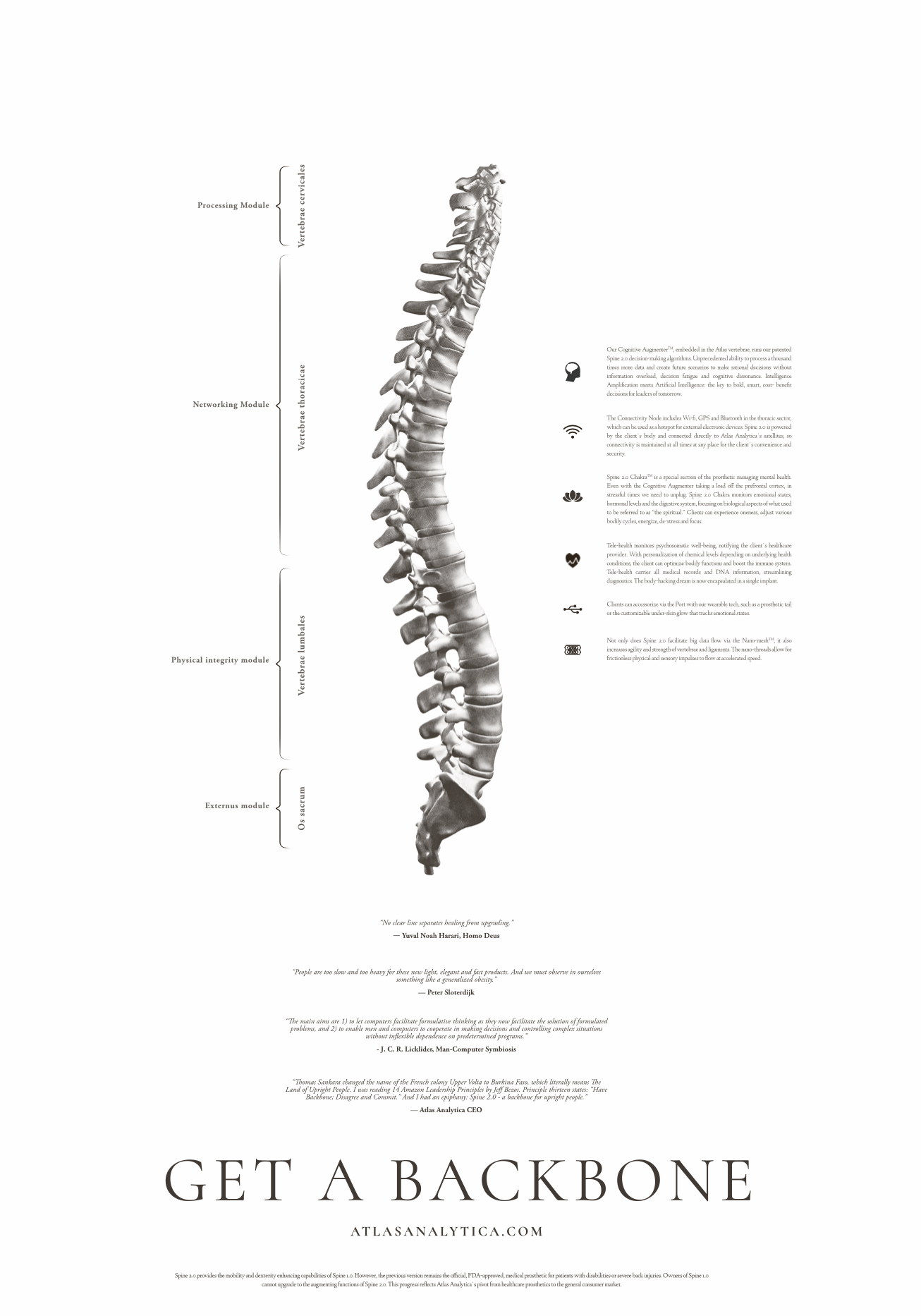 “Thomas Sankara changed the name of the French colony Upper Volta to Burkina Faso, which literally means The Land of Upright People. I was reading 14 Amazon Leadership Principles by Jeff Bezos. Principle thirteen states:‘Have Backbone; Disagree and Commit.’ And I had an epiphany: Spine 2.0 - a backbone for upright people.” - Atlas Analytica CEO